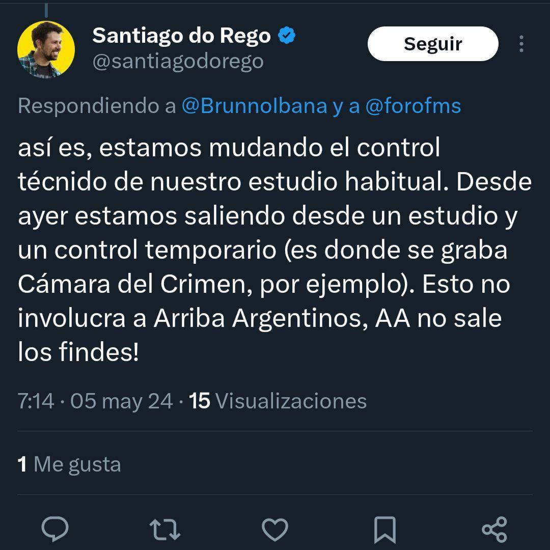 Justo venía a decir lo mismo, le pregunté a Santiago Do Rego y me respondió que están mudando el control técnico y están usando el estudio que graban, entre otros programas, “Cámara del crimen” (lo que dice de Arriba Argentinos se lo responde a ese tal Bruno que el chabon puso como si el estudio de AA fuese el mismo).