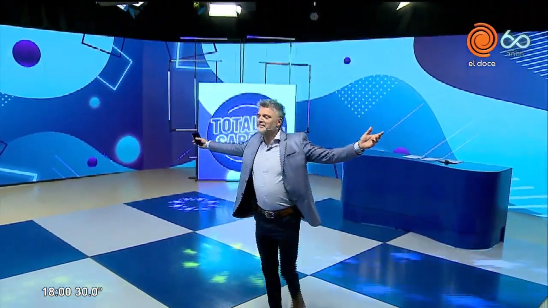 Tras 14 añosEl Doce vuelve a tener un programa local en VIVO en el fin de semana, Acaba de debutar “Total es Sábado” con la conducción de Sergio Zuliani y Alexandra Claus, el programa es un magazine de 2 horas que por el momento irá de 18 a 20, y es uno de los estrenos que El Doce tenia preparado por los** 60 Años** del canal. Con fecha todavía a confirmar habrá programación en vivo a la medianoche con un Late Night Show conducido por Joel Rossi. Total es Sábado es el primer programa que se emite en vivo desde un estudio externo al canal en 8 años, ya que desde que El Doce pasó a emitir en HD traslado todos los programas en vivo a los 4 estudios de su planta transmisora.