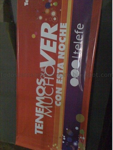Por lo que se ve en los afiches de fondo de las fotos del post anterior, van a usar mucho el naranja y el violeta en la grafica; e incluso ya estan emitiendo el institucional UUUUUUUH TELEFE en las repetidoras (Que ni se esmeraron en sacarle el Telefe a la cancion), como aca en Canal 8 Tucuman: