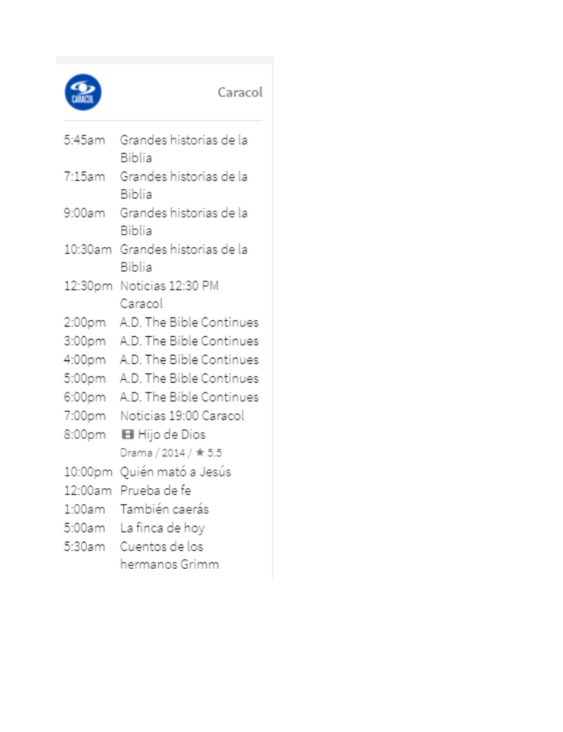 El Uno también va a transmitir películas bíblicas, y **RCN no va a transmitir programación religiosa en absoluto.**
