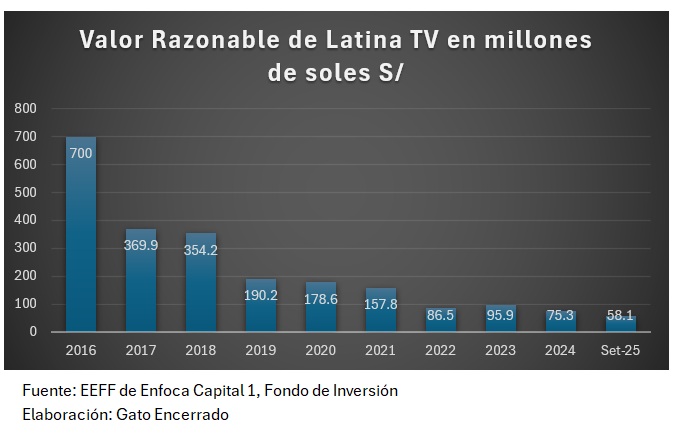 El fondo Enfoca es dueña de Latinoamericana Redes y Comunicaciones SAC, la que a su vez tiene el 99.99% de las acciones de Latina Multiplataforma SAC y esta tiene el 99.99% de la Compañía Latinoamericana de Radiodifusión S.A. (Latina Televisión).