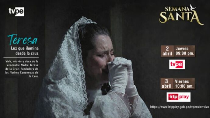- TV Perú emitió el documental Teresa, luz que ilumina desde la cruz el jueves 2 de Abril a las 9:00 pm. Como también al día siguiente emitirá El apóstol de los Andes a las 6:30 pm, y a las 10:00 pm con Semana Santa en Huaraz, la película.