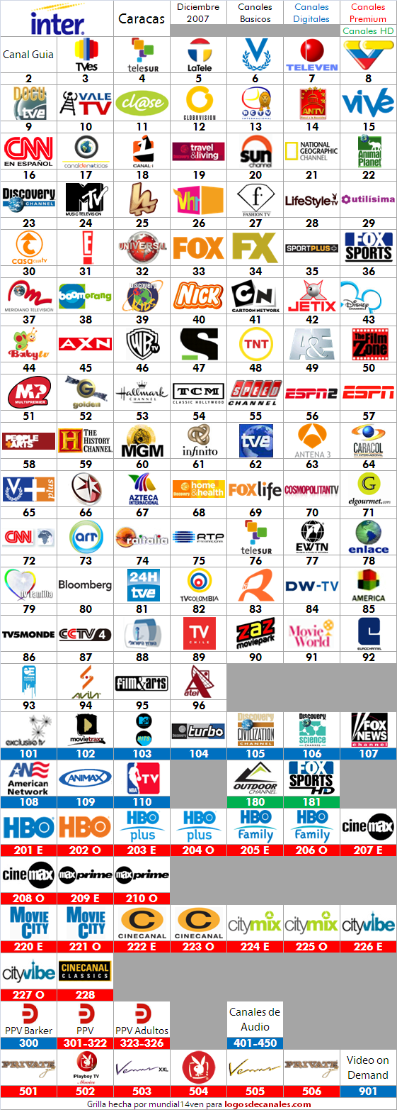 Quisiera mostrarle una comparativa de la evolución en la oferta de canales en los primeros años de Inter (anteriormente Intercable) en Caracas.