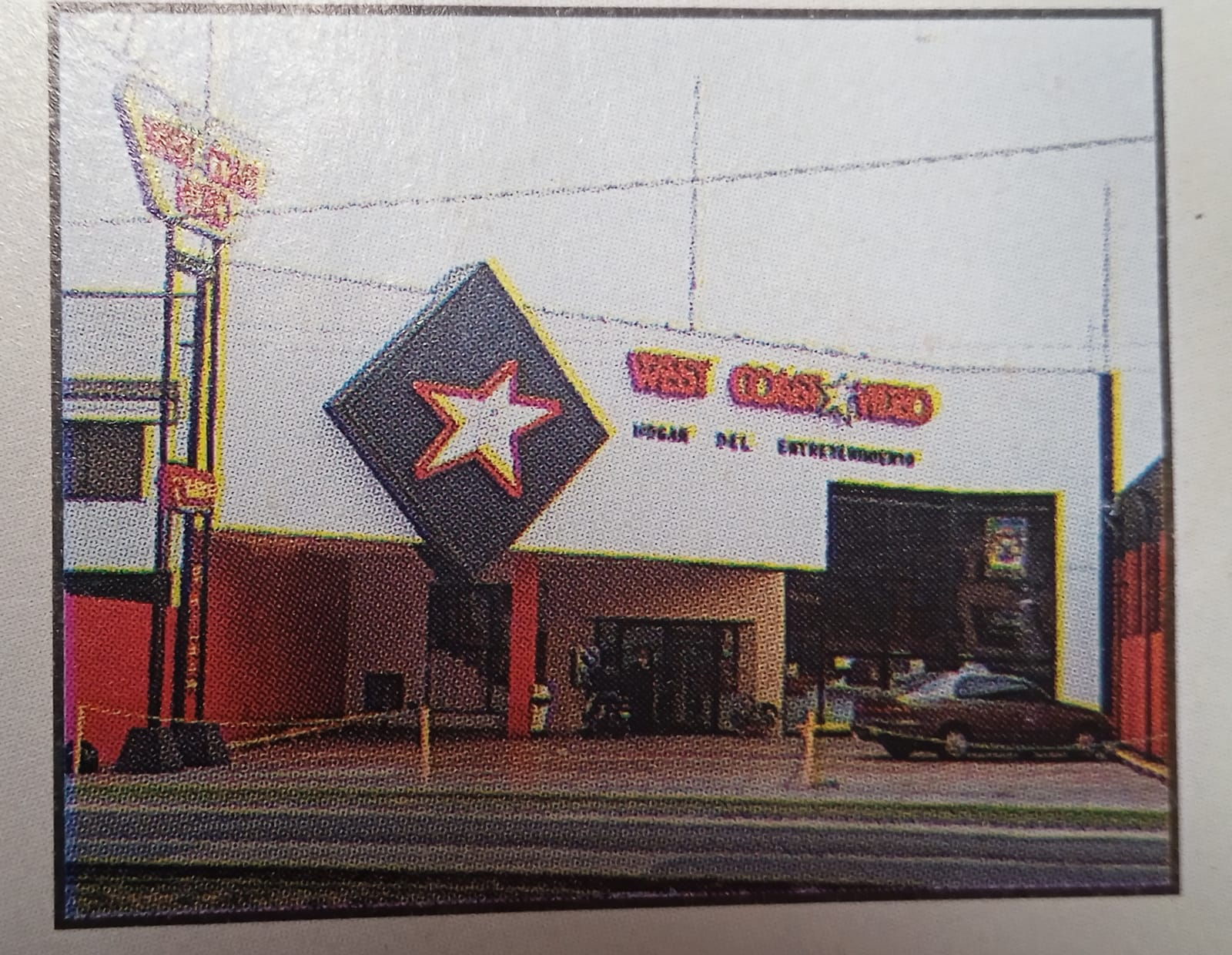 West Coast Video solo tuvo dos o cuatro sedes en Lima me parece, ese de la fotografía es del de la Avenida Benavides en Miraflores, si no me equivoco estuvo ubicado junto al grifo Shell (posteriormente Primax y ahora Repsol) de la esquina con Avenida República de Panamá, la otra sede estuvo en Magdalena, en Avenida Javier Prado con Jirón Roca de Vergallo donde posteriormente abrieron Fasa como local insignia y actualmente está Mifarma, los otros locales eran módulos ubicados en Wong, Metro y Santa Isabel, recuerdo qué esta cadena hacía alquileres de películas en estuches de CD, posteriormente las tiendas propias de forma extraña cerraron en el 2005 y solo quedaron los módulos hasta el 2006 a excepción del Wong de Plaza San Miguel hasta el 2009 y al final cerró definitivamente.