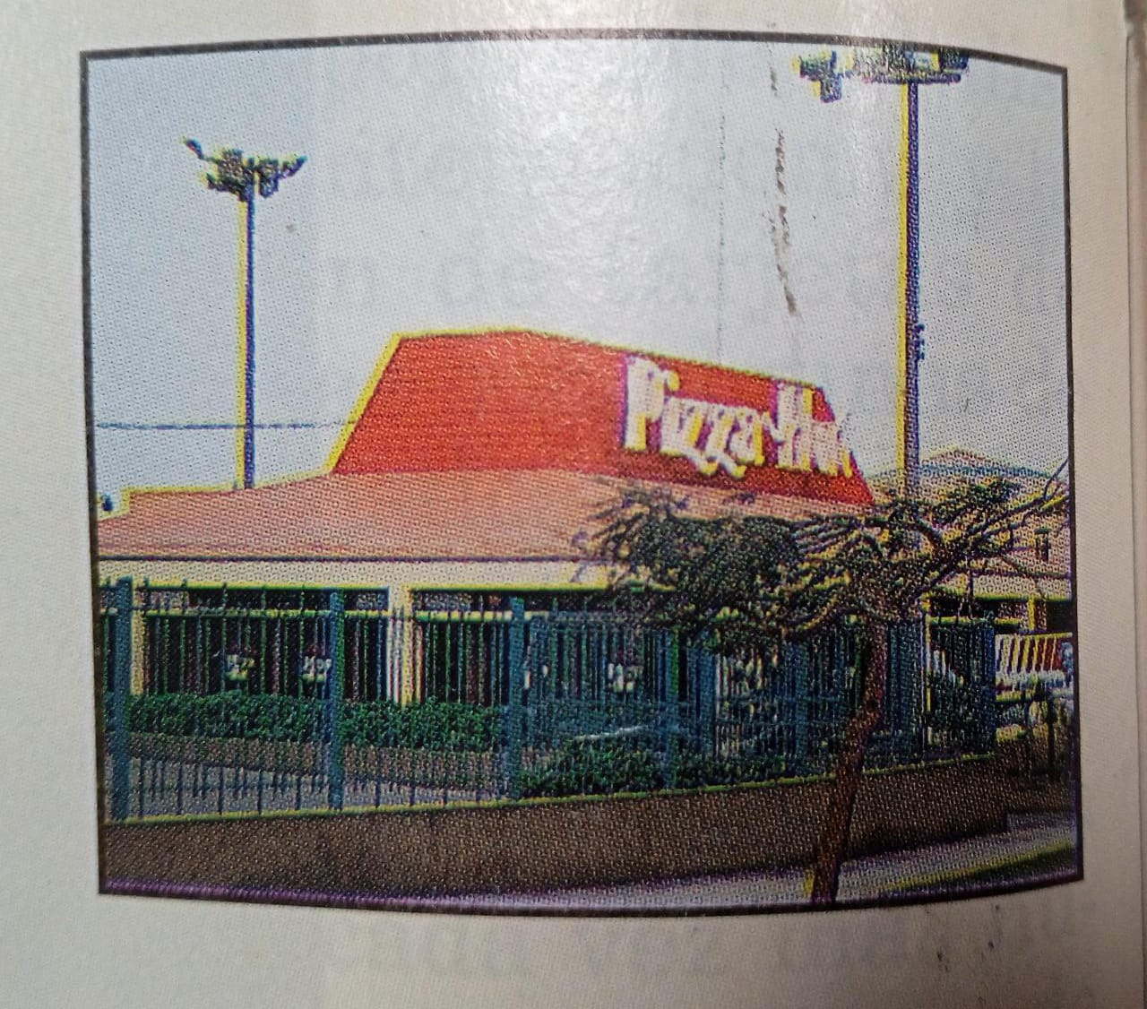 Lo qué hasta el momento quiero ubicar es KFC y Pizza Hut colocados juntos en un solo letrero en la misma puerta y arriba una cadeneta de luces de colores, salió en la sección Economía y Negocios de un Miercoles de Octubre del 2011 en El Comercio en la contraportada cuando recordaron restaurantes del pasado.