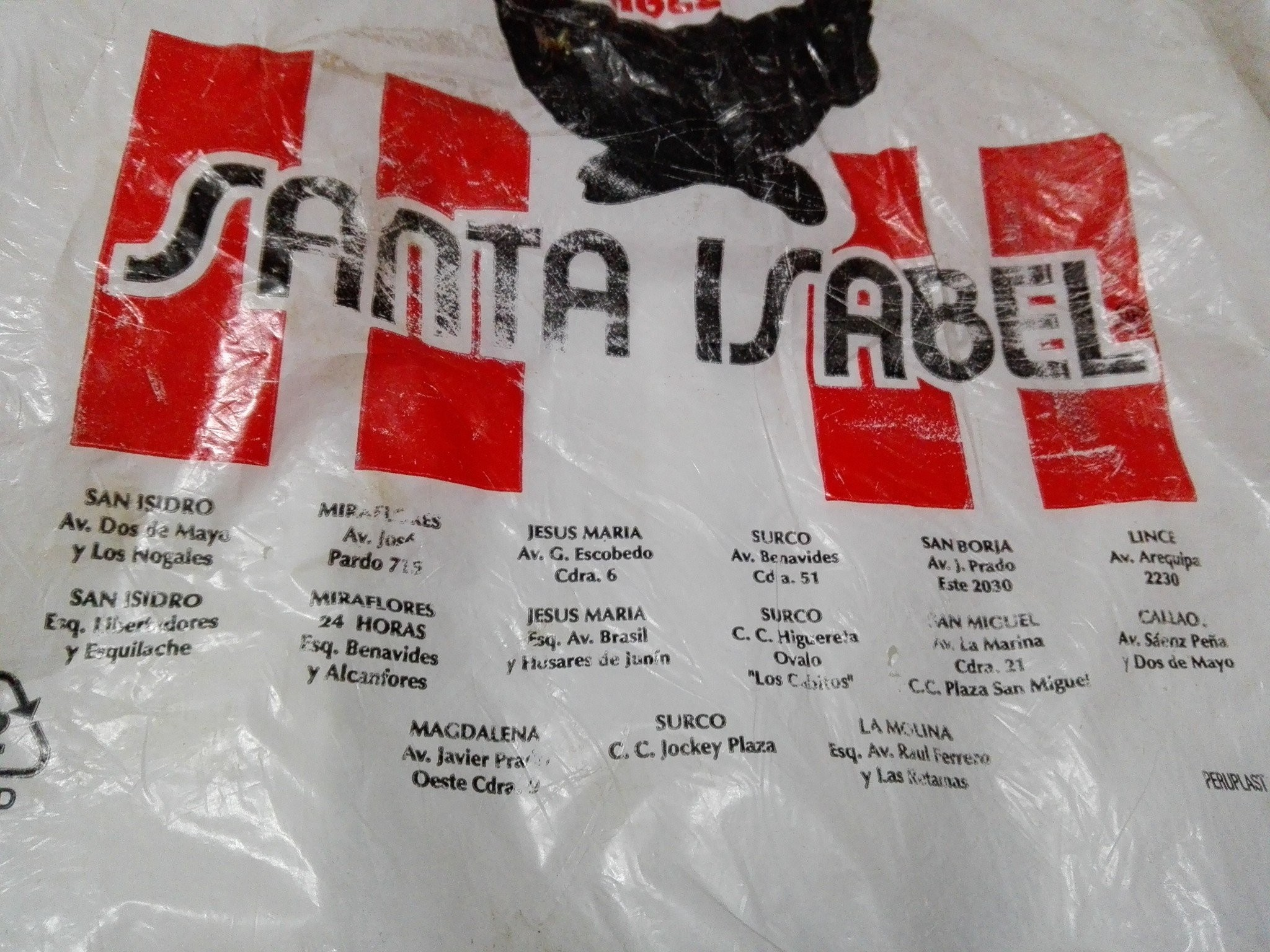 Y dos imágenes de una bolsa de Santa Isabel, por el directorio de los locales probablemente de 1997 o principios de 1998 ya que aún no aparecen los locales de Los Olivos y la Bolichera.