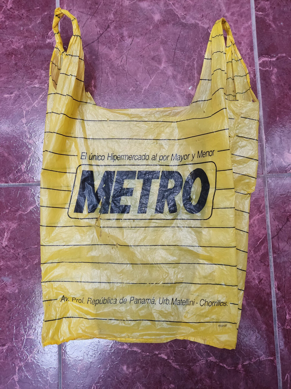 Esa bolsa de Metro es de la época cuando era un piloto de los Wong al alquilar el Bazar Central del Ejercito, en esta bolsa se aprecia el logo no tan perfecto y todas las letras aparecen delgadas.