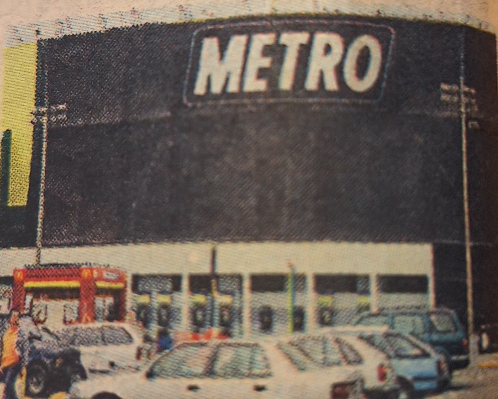 Este es un lost media hallado: el hipermercado Metro de San Miguel a días del rebranding en octubre de 2004. Tal como se decía en las reseñas, el local había sido pintado y lo que sería el nuevo logo tapado con una lona negra que tenía el antiguo en color blanco. Acá cómo se veía antes de ese esperado 29 de octubre. La nota, por cierto, decía también el dato de los primeros cuatro locales remodelados: junto al mencionado, fueron los de Breña, San Isidro y Pershing. Los demás se cambiarían progresivamente desde noviembre.