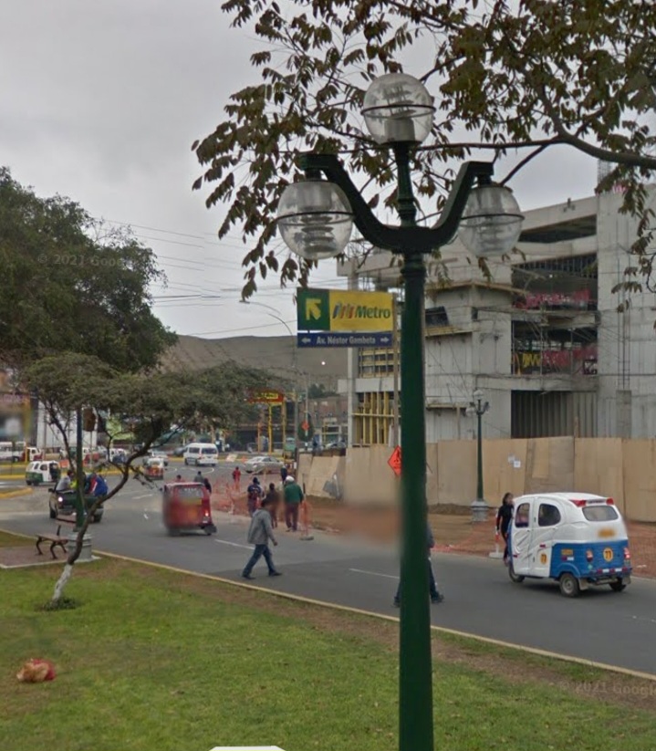 El hipermercado Metro de Hacienda en San Juan de Lurigancho, en una noche entre mayo y junio de 2004. A la izquierda se ve un poco del entonces reciente Cine Star que hasta hoy acompaña a la tienda. La infraestructura y diseño era muy similar al desaparecido local de la UNI, considerando que ambos abrieron casi a la vez (diciembre de 1999).