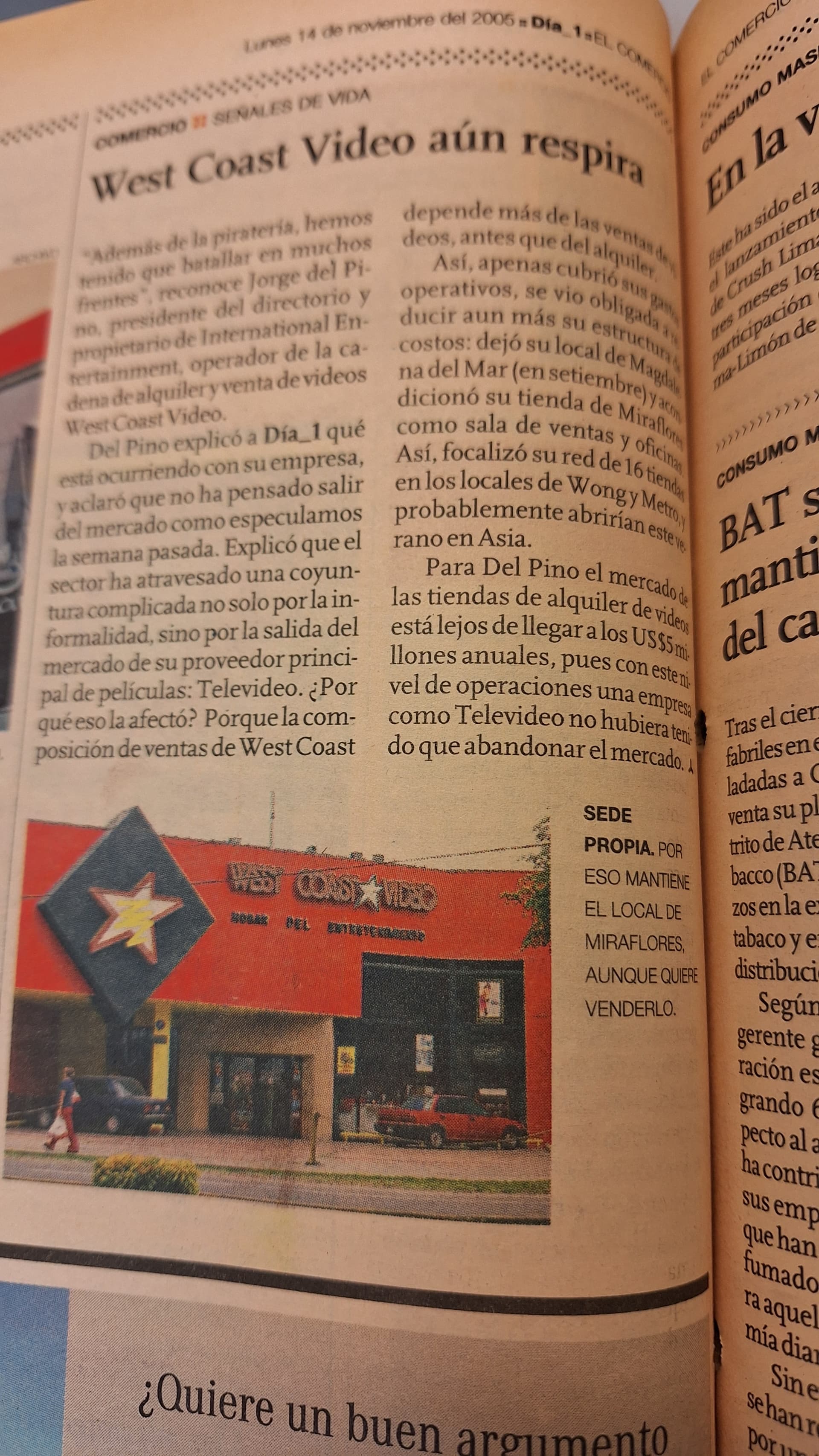 La cadena de videoclubes West Coast Video tratando de sobrevivir a finales de 2005. No duraría mucho más. En la foto, el local de Miraflores por entonces.