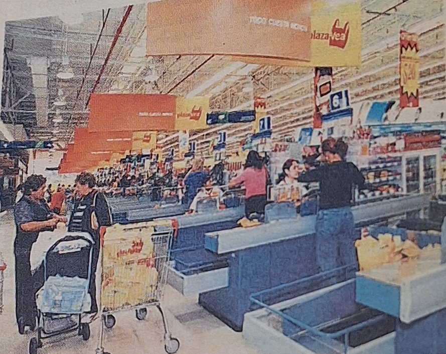 Interior de un hipermercado Plaza Vea aprox. entre 2002 y 2003. No identifico el local, aunque parece el del Jockey Plaza.