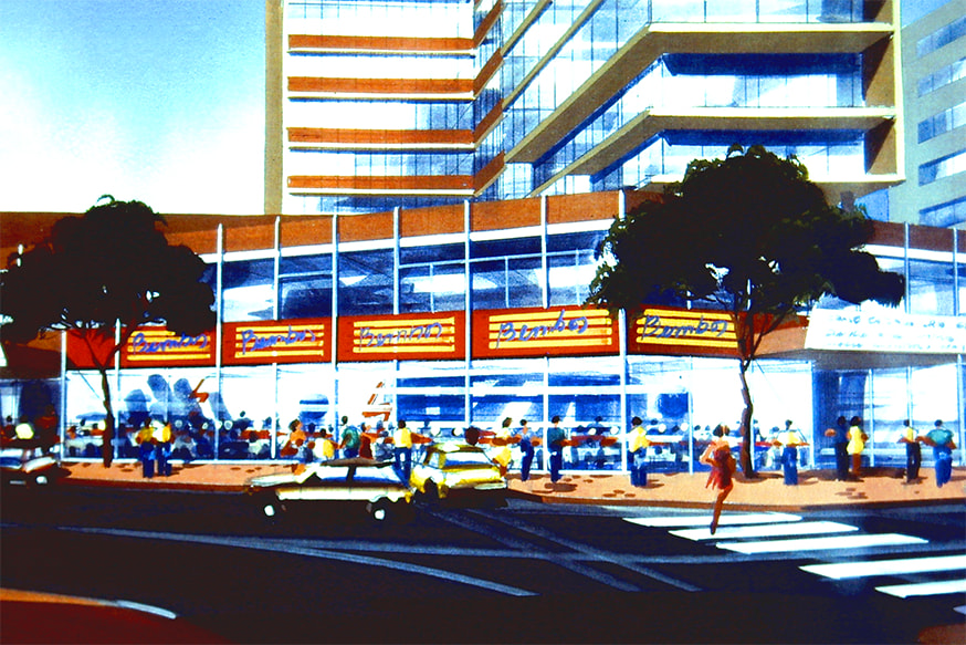 - Otro boceto pero en el Óvalo de Miraflores donde terminaría abriendo su archirrival McDonald’s en 1997. Al parecer fue una propuesta de local que no llegó a concretarse.