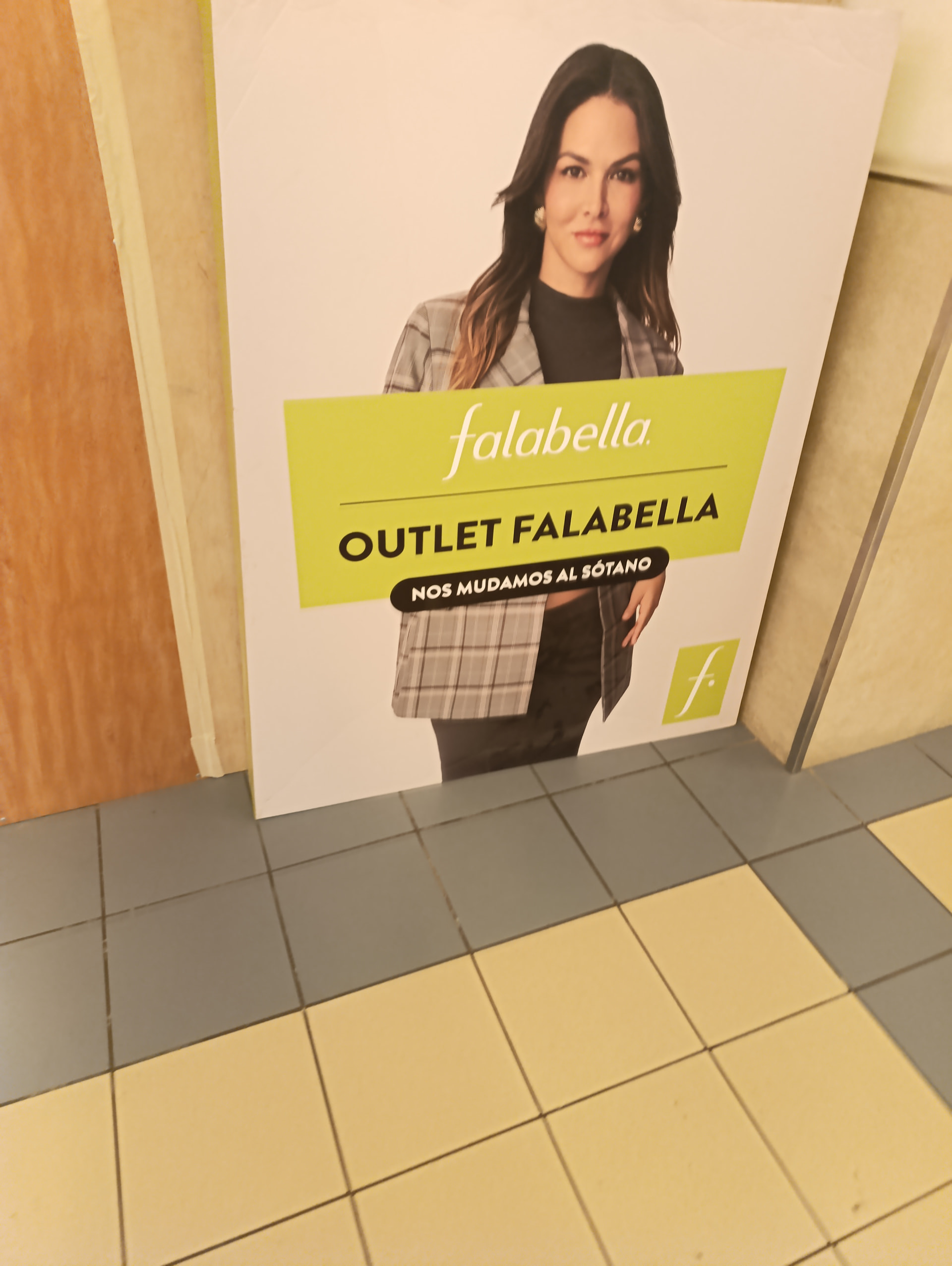 Un anuncio del Falabella Outlet frente a las escaleras que dan al patio de comidas, ahora el único lugar por donde de puede acceder a la tienda.