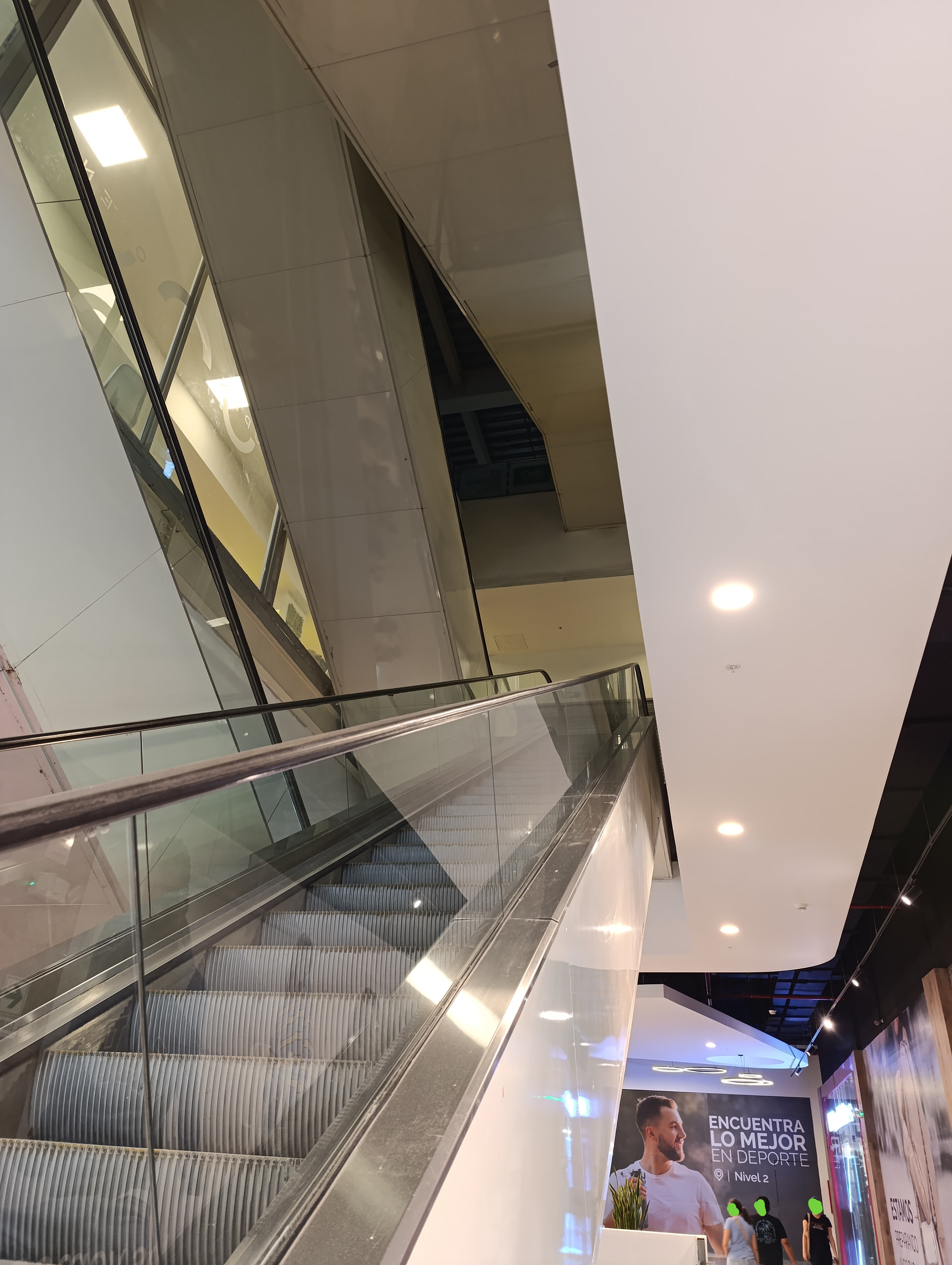 Acceso a los antiguos niveles superiores de Saga Falabella, se aprecia parte del segundo piso(Centro MAC y Dollarcity) y al fondo se aprecian los niveles abandonados de la tienda departamental.