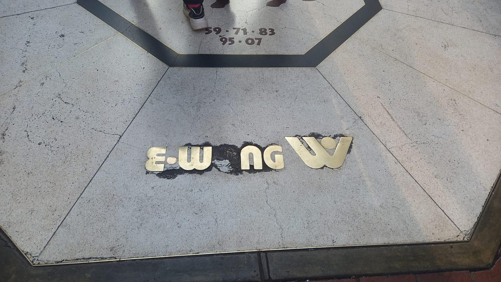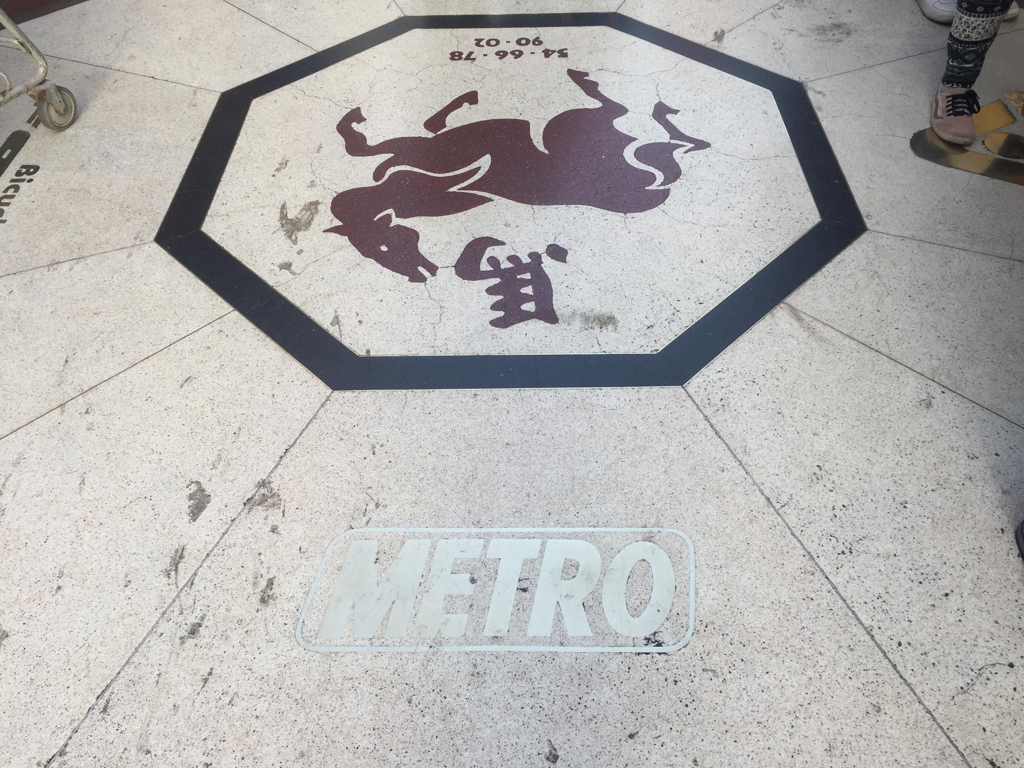 Hoy pase por el Barrio chino de Lima y no se como pero mire al piso y note el logo de E. Wong, con la E, el logo original, tristemente por el desgaste de los años le falta la o pero eso sería de pasar considerando cuanta gente pasó por ahí.. También vi el logo de 1992 de Metro y el logo anterior de Interbank aunque me hubiera parecido más intersante si hubiera sido el logo que dijiera Interbanc