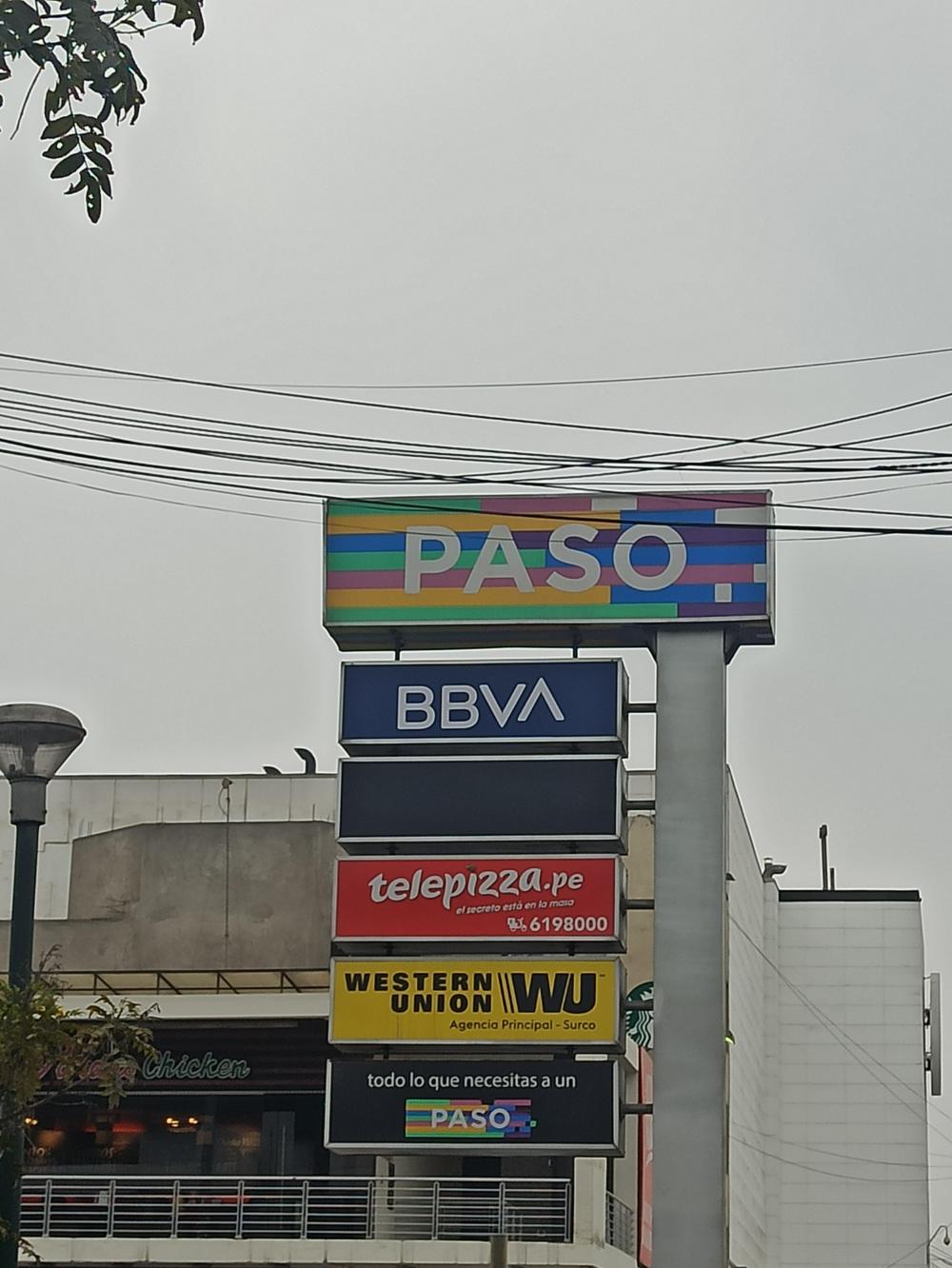 Por cierto, aquí va una imagen del totem del strip center Paso Caminos del Inca que por alguna razón aún conserva el logo de Telepizza a pesar de que su local de ese pequeño complejo ya no opera.