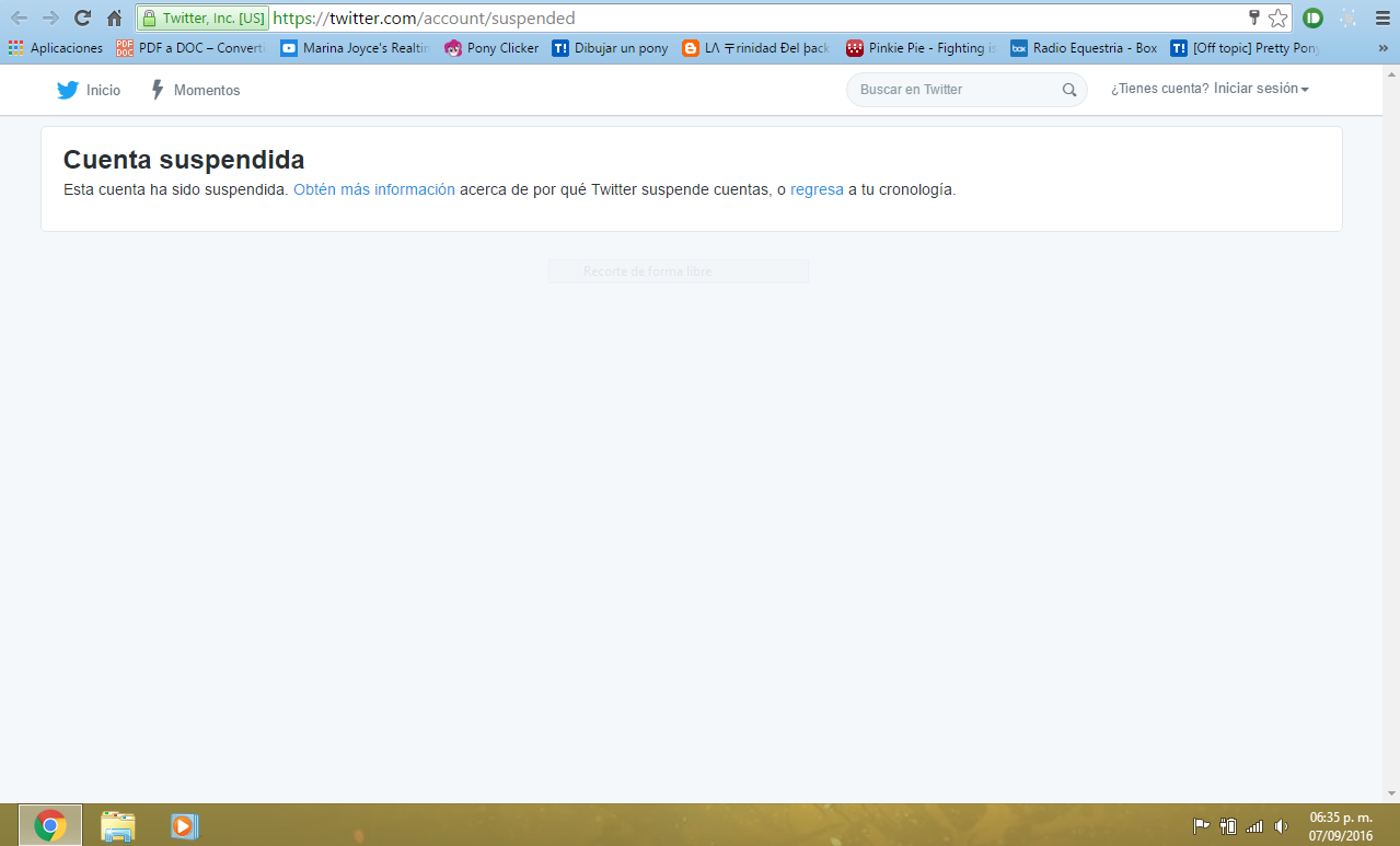 Al querer entrar a la cuenta en cuestión, ésta ya es identificada como cuenta suspendida.