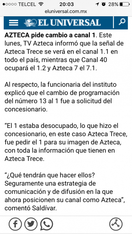 CReo que se nos olvida algo pero tambien importante en este caso de Azteca 13 y su cambio y su homologacion nacional, es decir que tambien en Proyecto 40 anuncia que estaran en el 1.2 a nivel nacional y en la CDMX en el 40.1. Y este canal no se han dicho que cambio tendra pero tambien se necesita renovarse totalmente.