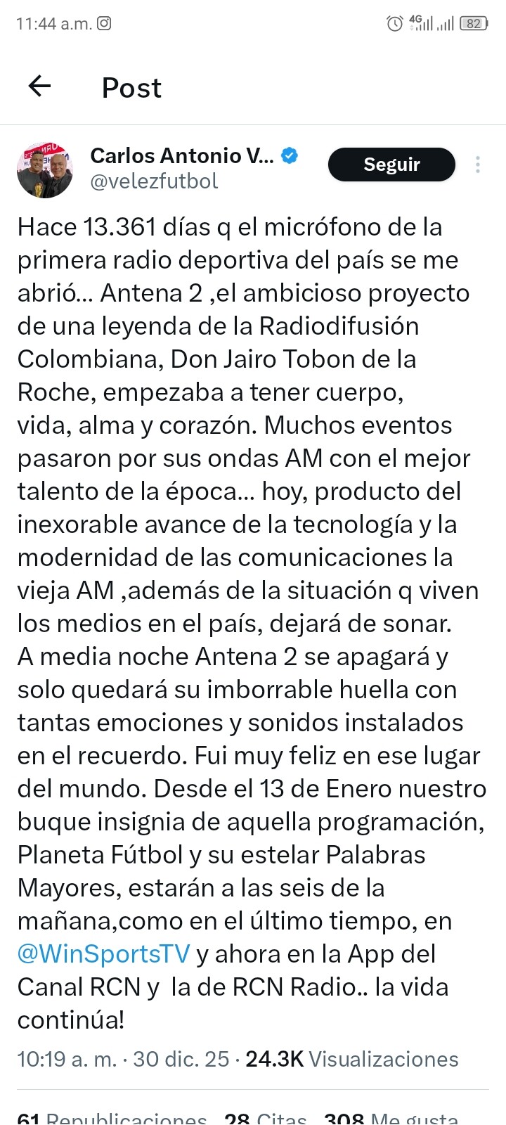 Acaba de trinar Carlos Antonio Vélez sobre el final de Antena 2 y lo que viene para Planeta Fútbol el año que está cerquita