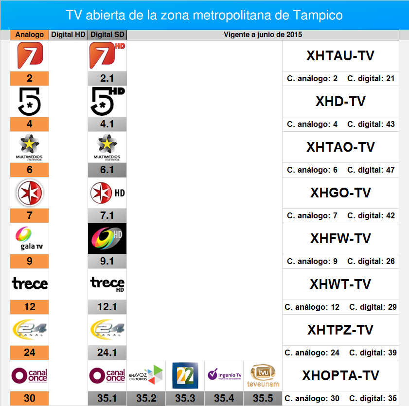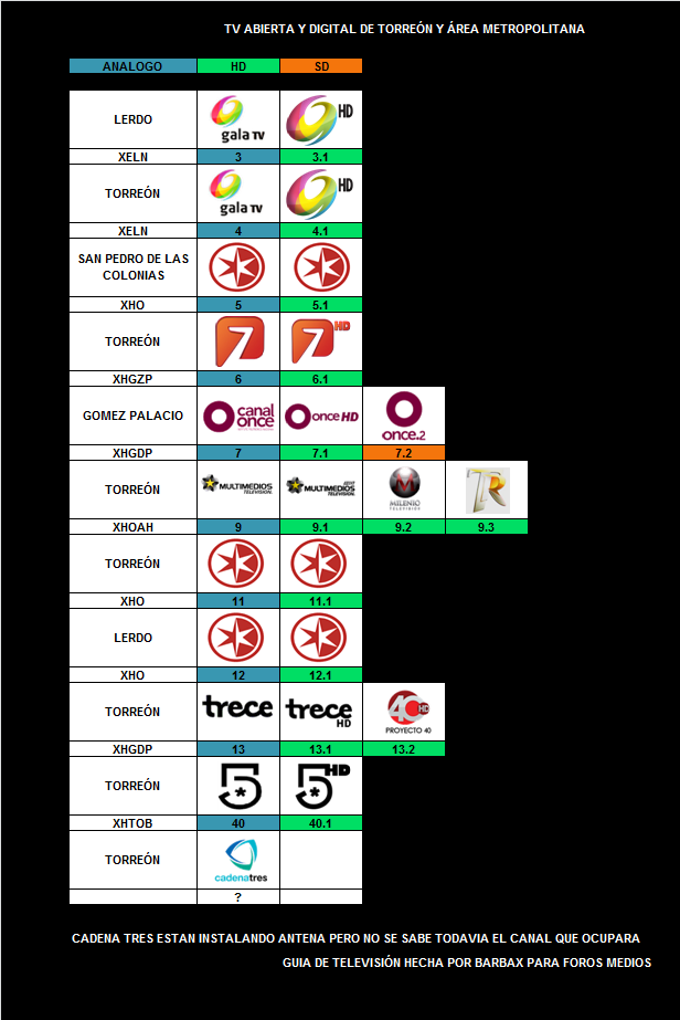Como dato algunas repetidoras no se de donde vienen, aclaro que me encuentro al oriente del Edo. de Mex Casi pegado al D.F asi que recibo todas las señales del Área Metropolitana con una calidad de arriba del 80% de potencia.