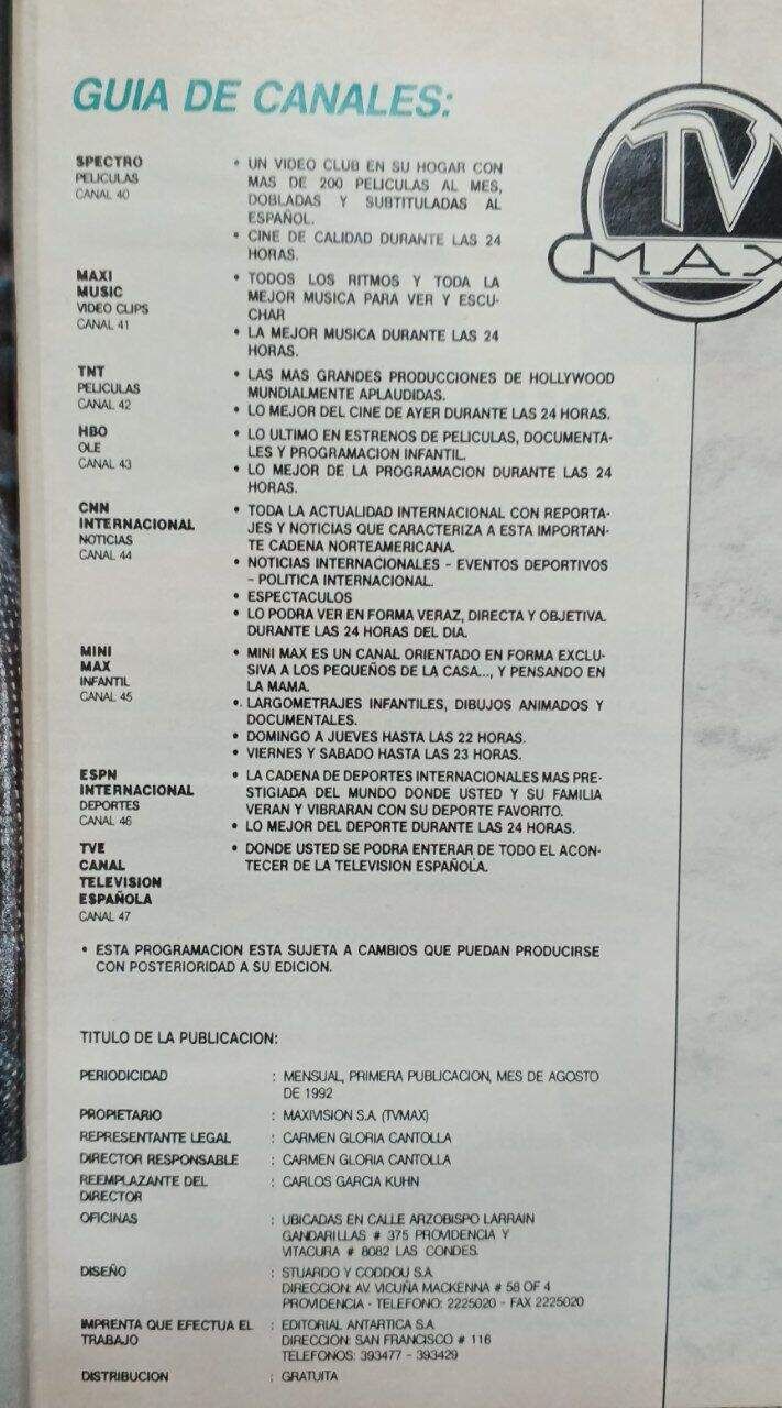 Posteriormente tuvo canal infantil propio, Mini Max, que vino creo que cuando Spectro cerró. Y además creo que compartía con el canal de música. Ese esquema fue replicado años más tarde (gestión VTR) con Nickelodeon y MTV.