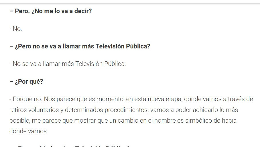 Primero: mi repudio total a los dichos de este personaje sobre cerrar un medio público. Segundo: es un grave error cambiarle el nombre. Televisión Pública es una marca ya instalada en la gente. Insistir con borrar su identidad es a propósito para bajarle el precio y hacer un medio sin prestigio ni calidad. Lo que vimos de ATV-Argentina TV era un pésimo branding con un logo feísimo. Espero que no se concrete.
