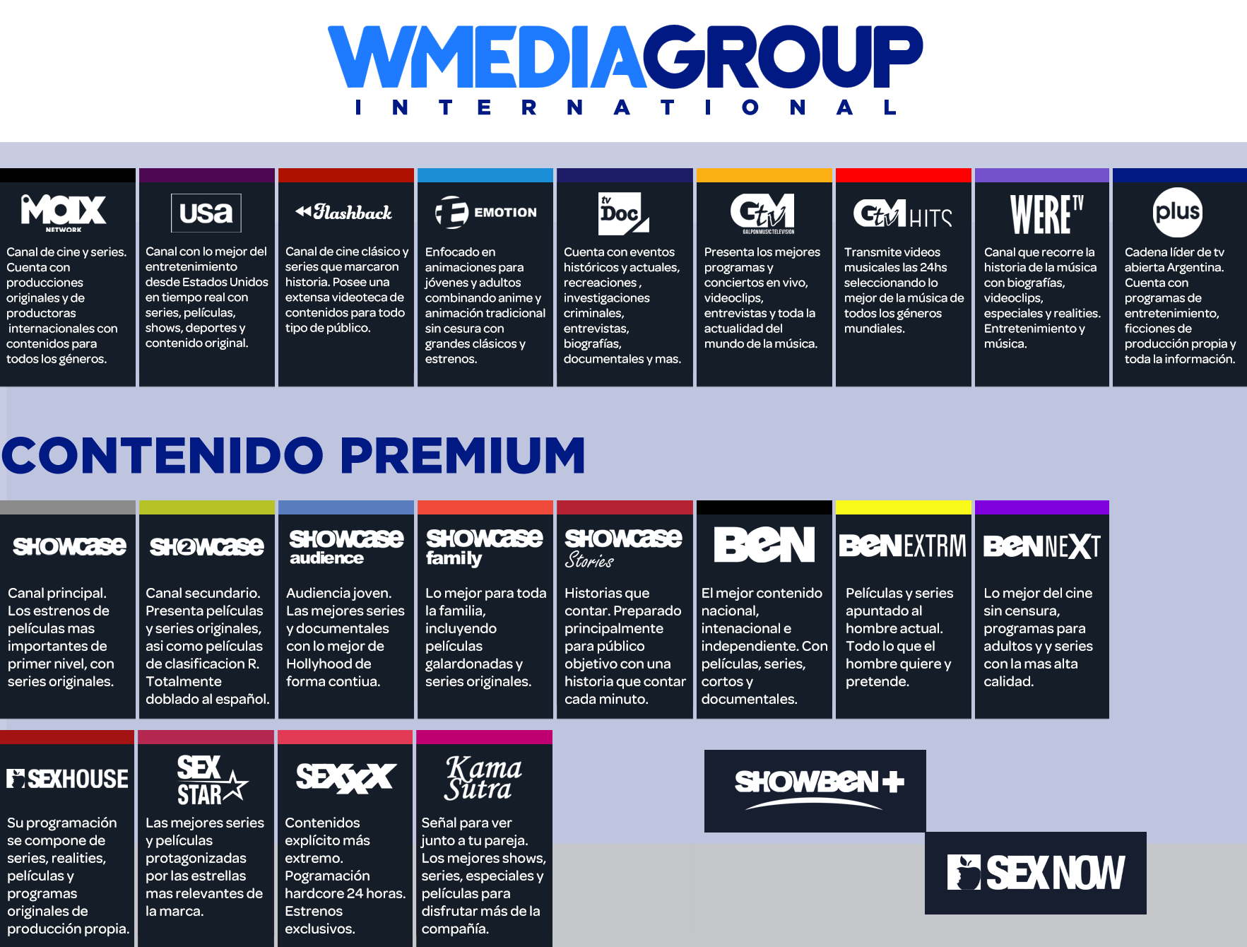 **SexyNow:** Esta conformada por un conjunto de señales y productos de contenido premium para adultos. Se encuentran canales como* SexHouse, SexXXX, SexStar y Kamasutra*. Ademas de diferentes productoras de contenidos y plataformas VOD.